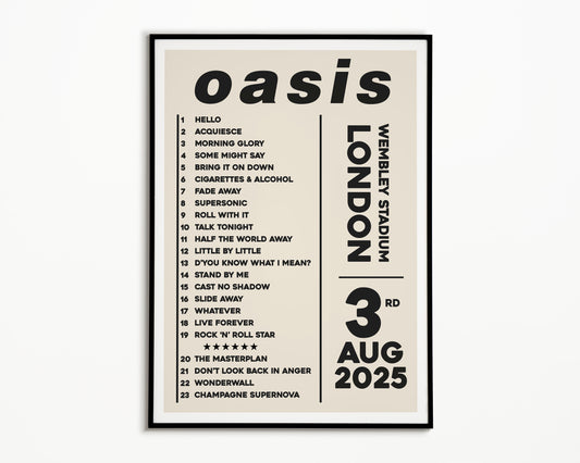 Regular price From £9.00Regular priceUnit price / per£0.00Sale price From £9.00Oasis Live '25 Setlist London 3rd August