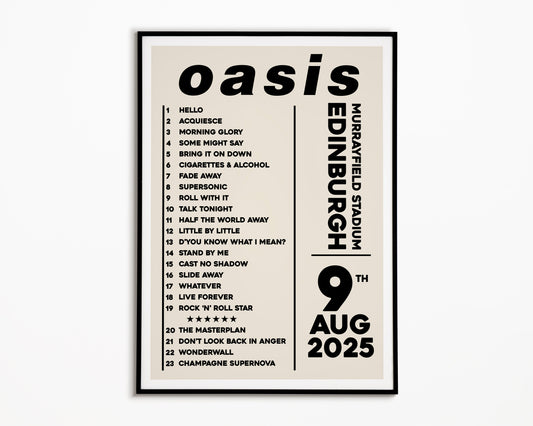 Regular price From £9.00Regular priceUnit price / per£0.00Sale price From £9.00Oasis Live '25 Setlist Edinburgh 12th August