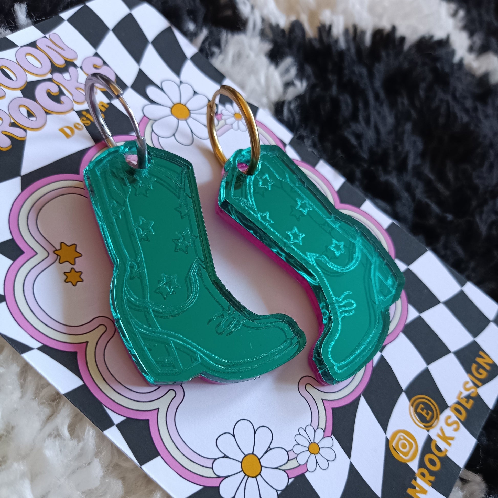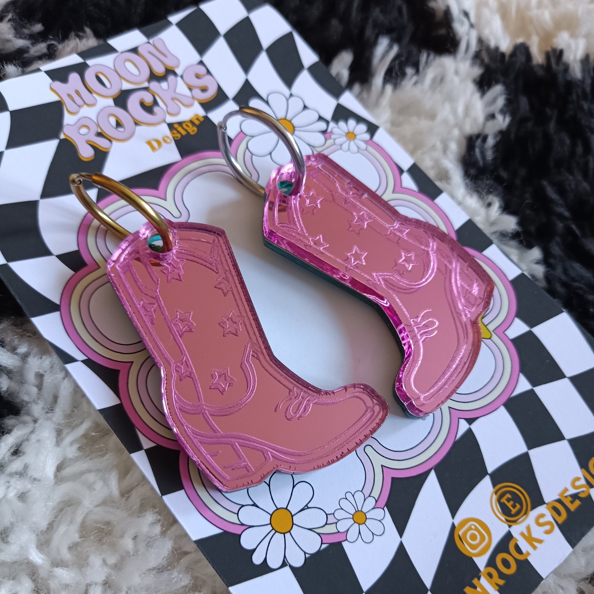 All Moon Rocks Design earrings are handmade. That means that everything is done in house! This includes using a laser cutter to cut out every individual shape, assembling all of the pieces, attaching any hardware and then packaging and sending them off to their new homes! All earrings are made using the best quality materials, including excellent acrylic and hypoallergenic earring hardware (stud backs, hoops, clip ons etc). This is a particularly important part of the process to me personally as someone with highly sensitive skin - I often find lots of earrings uncomfortable. In most cases, most earrings can even be made as clip on's, so there's something for everyone!