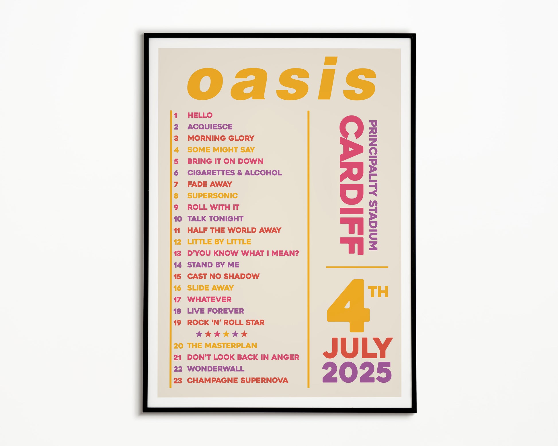 Oasis Live '25 Setlist Cardiff 4th July