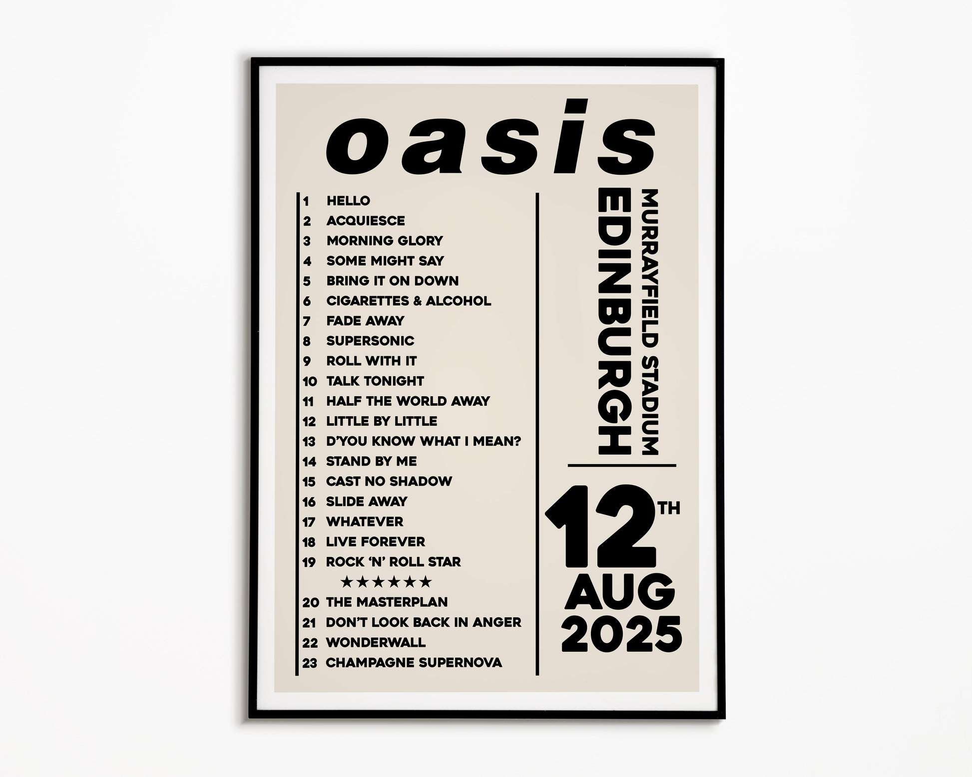 Oasis Live '25 Setlist Edinburgh 12th August